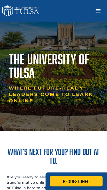 100%Still have questions?Take a look at our frequently asked questions. Still need answers? Our dedicated admission team is ready to introduce you to The University of Tulsa online experience. For questions about our online nursing programs, you can contact the team at 918-612-5036 or via email at admission@online.utulsa.edu. For questions about the M.S. in Cyber Security, please contact Tulsa graduate admissions at 918-631-2336 or via email at grad@utulsa.edu.