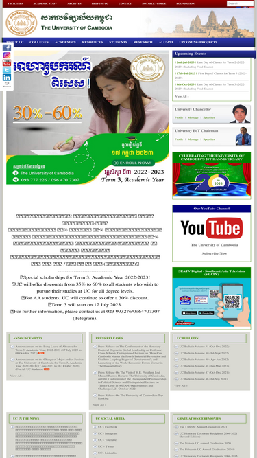52%college of arts, humanities and languages, college of education, college of law, the tony fernandes school of business, college of science and technology, college of media and communications, techo sen school of covernment and international relations, the school of undergraduate studies , school of foreign languages , the school of graduate studies , university in cambodia, the best university in cambodia, uc,