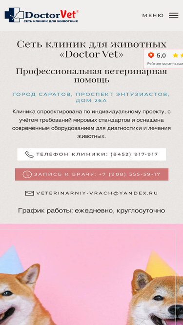 92%круглосуточная клиника для животных «ветеринарный врач», заводской район, город саратов.