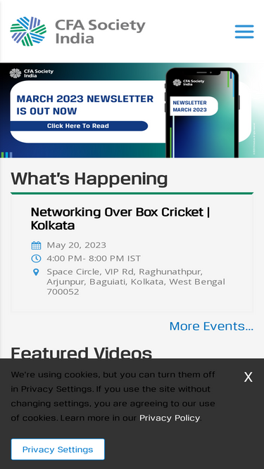 CFA Society India, registered as Indian Association of Investment Professionals under Section 8 of Companies Act 2013, is a company limited by guarantee.Established in March 2005, with 50 members, today it is one of the leading societies of CFA Institute with more than 3,200 members spread across India.The member base consists of portfolio managers,