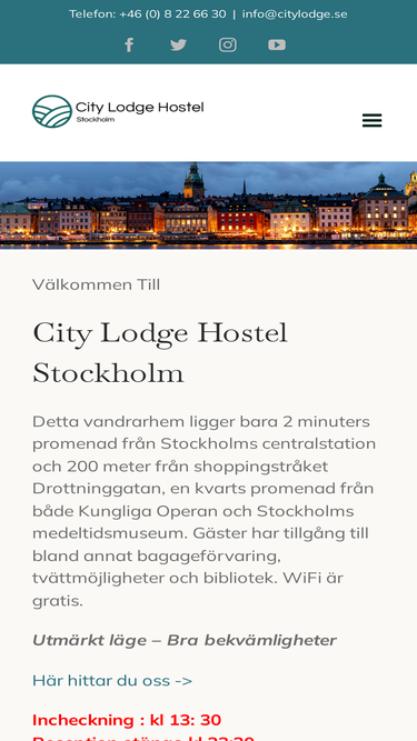 99%Hitta till City Lodge Hostel City Lodge ligger ett stenkast från Centralstationen, mitt i hjärtat av Stockholm. Det ger dig en lätt möjlighet att upptäcka pulsen i vår huvudstad, och sedan kunna koppla av och vila efter en lång dag. City Lodge Hostel ligger ca; 200 meter från Stockholms Centralstation och Cityterminalen (huvudterminalen för