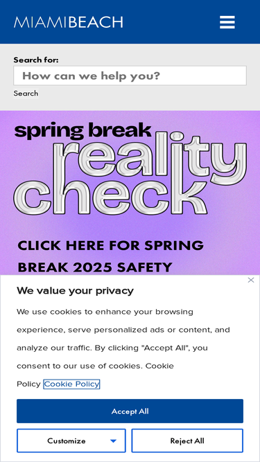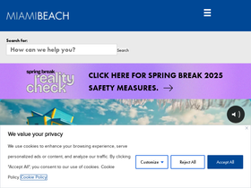 75%The official website of the City of Miami Beach featuring information for residents, visitors and businesses including government meeting broadcasts, an events calendar, permit applications, department service information and more!