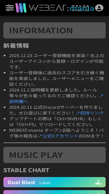 84%4k+spaceキーで遊ぶ音楽ゲーム「webeat:mania」|・dfjk+spaceキーで遊ぶシンプルかつ奥が深いリズムゲーム・曲や譜面は順次追加予定・キーボードで操作(タッチ操作未対応)