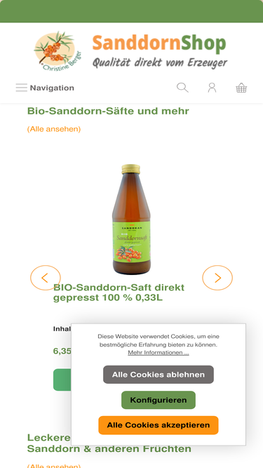 100%Bio-Sanddornsaft, Sanddornöl, Sanddorn-Spezialitäten, Sanddorn-Kosmetik: Für unserer Produkte verwenden wir nur selbst angebauten deutschen Bio-Sanddorn. Hier bestellen!