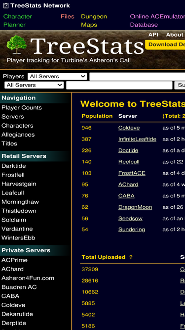 89%TreeStats records ingame data from your characters using a Decal plugin and stores it for convenient out-of-game browsing. TreeStats lets you view your characters and allegiance chains and also provides rankings and tracks server population counts.