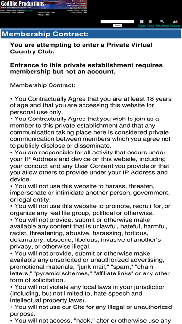96%godlike productions is a discussion forum. discussion topics include ufos, politics, current events, secret societies, and much more.