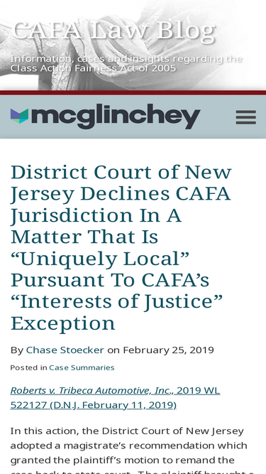 CAFA Law Blog provides case summaries & legal resources surrounding the class action fairness act of 2005. Published by McGlinchey Stafford law firm.