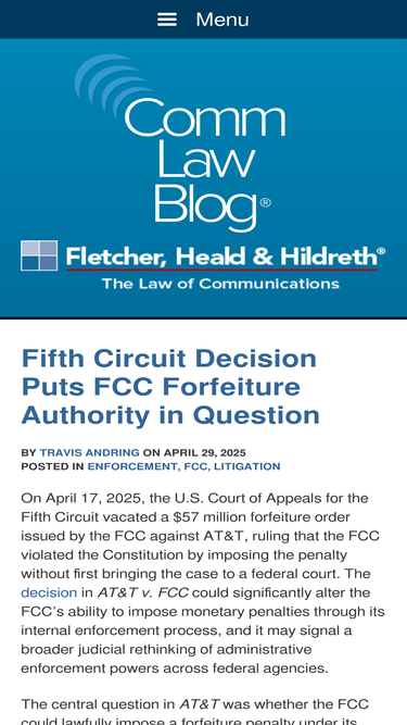 The other five competitors in the top 10 list are commlawblog.com, jenner.com, dwt.com, winston.com, and wbe-llp.com.