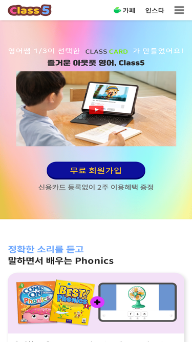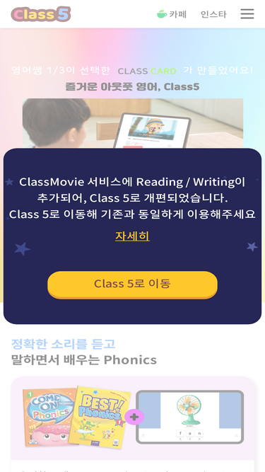 초등 영어학원, 공부방, 1인 원장님을 위한 5가지 학습서비스 - 파닉스, 리딩, 라이팅, 소리영어, 그래머 학습서비스 제공, 클래스5