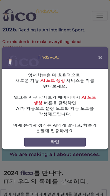 80%fico는 입력한 문장에 대해 각종 클라우드 기반 서비스와 파서를 이용하여 독해에 도움이 될 수 있도록 문장을 분석해 줍니다. 수능, 토익, 공무원 독해도 클릭 한번으로 문장 분석과 해석, 단어부터 질문, 관련문장까지 제공됩니다.