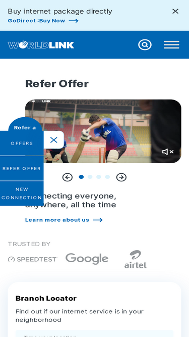 100%WorldLink Communications is an Internet service provider in Nepal. The nation's largest ISP, it has 10 lakhs+ active consumer accounts and 3,000 business accounts