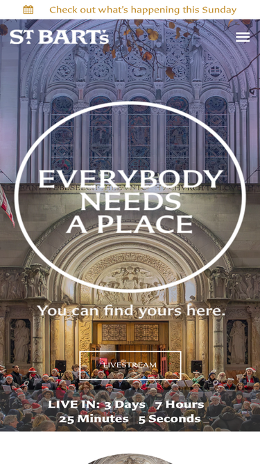74%we welcome you to st. bartholomew’s church, a warm, vibrant and inclusive parish of the episcopal diocese of new york, located in the heart of midtown manhattan at 325 park avenue between 50th and 51st streets.