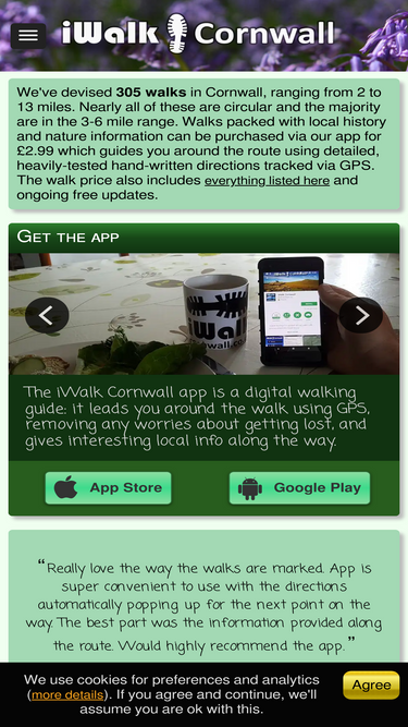 99%310 thoughtfully-crafted circular walks in Cornwall ranging from 2 to 10 miles. Each walk has detailed double-checked directions, a route map and information about the places of interest along the walk.