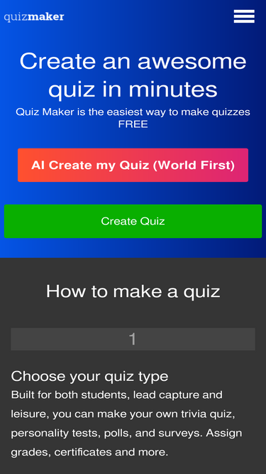 86%Make your own online quiz. Capture leads and create tests. Create compelling viral quizzes that capture leads or intelligently quiz your students. Very easy to use