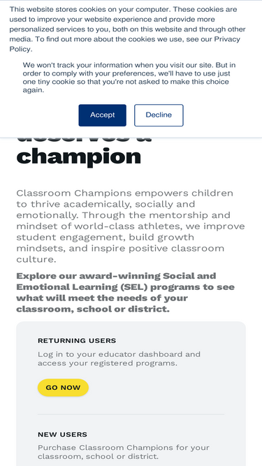 95%Schools turn to Classroom Champions for inspiring Social and Emotional Learning (SEL) curriculum and mentorship programs to improve engagement, build growth mindsets, and inspire positive classroom culture.