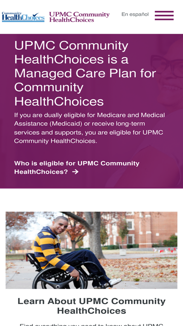74%If you are dual eligible for Medicare and Medicaid or receive long-term services and supports, learn about UPMC Community HealthChoices.