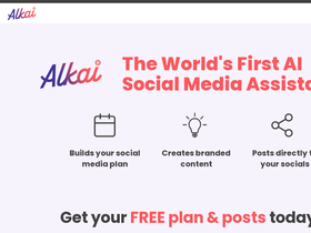 71%Alkai is your AI social media assistant—generate branded posts, schedule content, and boost engagement on Instagram, TikTok, Facebook, and more.