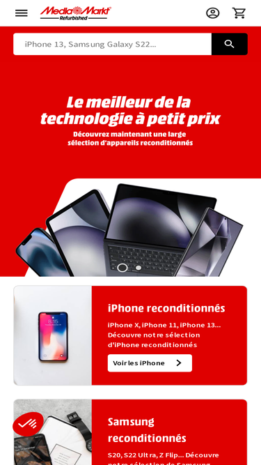 61%Smartphones remis à neuf, reconditionnés, Apple, Samsung , à prix attractifs proposés par MediaMarkt – garantie de 12 mois, envoi à domicile ou en point relais