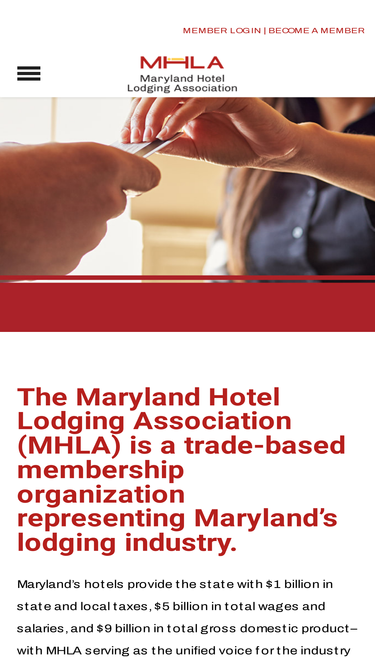 100%The Maryland Hotel Lodging Association (MHLA) is a trade-based membership organization representing Maryland’s lodging industry.