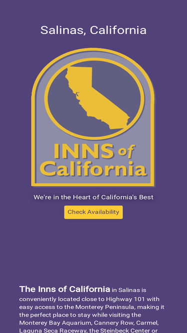 100%The Inns of California in Salinas is conveniently located close to Highway 101 with easy access to the Monterey Peninsula.