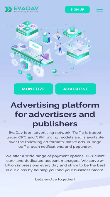 join evadav, a leading advertising network offering high-quality ads across multiple formats. reach a vast audience with our customizable ad platform. sign up now!