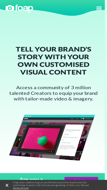 Launch Foap video content Mission, access over 3 MM global creators and receive your curated on-on brand video content in as little as 1 business day.