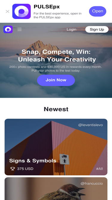 83%join pulsepx, built in collaboration with 500px, to reward good photography. experience 100+ photo contests per month, learn from others, and win awesome awards.