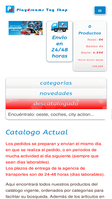 juguetería online especializada en playmobil, más de 1000 referencias distintas en stock. entrega en 24-48 horas, gastos de envío únicos de 4,99 euros