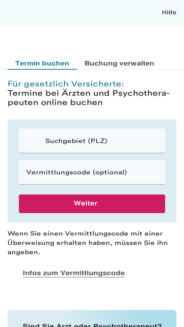 82%termine bei niedergelassenen ärzten und psychotherapeuten über den offiziellen terminservice der kassenärztlichen bundesvereinigung buchen. testsieger bei stiftung warentest.