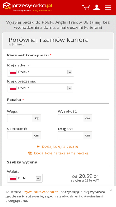 82%Zamów kuriera DPD, DHL, GLS, UPS i wyślij paczki do Polski, paczki do Anglii, paczki do Niemiec i całej UE. 70% taniej! Dostawa 2-7 dni. Odbiór codziennie.