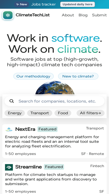 78%ClimateTechList aggregates 10,000+ up-to-date job openings daily from 600+ climate tech companies. ClimateTechList is the web's most comprehensive climate, climate tech, clean tech, and green jobs site for job seekers looking to work on climate change and the energy transition.