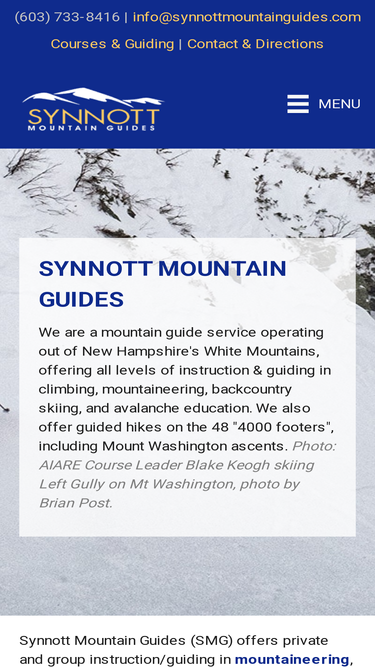 96%Synnott Mountain Guides. New Hampshire Rock Climbing, Ice Climbing, Mountaineering, Skiing, Hiking, Avalanche Education. Mountain Guide Mark Synnott.