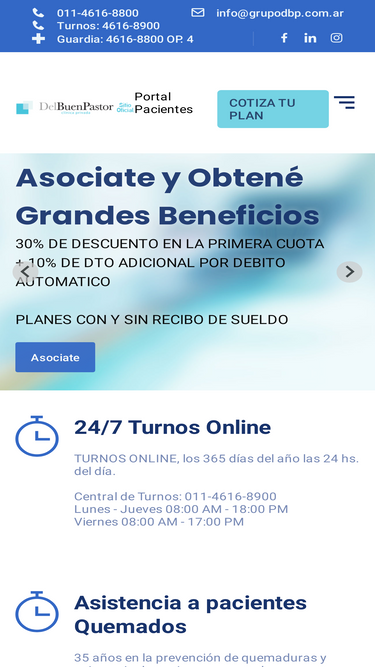 100%en bayres plan, el sistema de salud prepago de la clínica privada del buen pastor, te ofrecemos servicios y beneficios exclusivos de alta calidad. desde atención médica de familia hasta cirugía estética, tenemos más de 100 especialidades para cuidarte. además, ofrecemos una amplia red de centros médicos y farmacias, cobertura odontológica, internación, asistencia al viajero y mucho más. ¡descubre por qué somos la mejor opción para tu salud en la zona oeste!