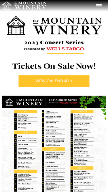 72%onlinecitytickets.com is your source for mountain winery tickets as well as all saratoga venue tickets. get your mountain winery tickets as soon as possible.
