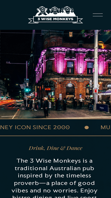 92%Celebrate New Years Eve at 3 Wise Monkeys Bar & Club in Sydney CBD. 3 floors open until late with Live DJ's & Music
