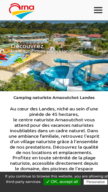 84%le domaine d’arna est un camping naturiste dans les landes, un village naturiste familial en bord de mer avec piscine, plage et centre de remise en forme