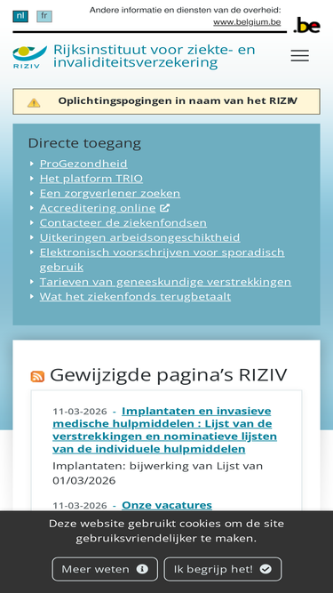 85%Verwerkingsverantwoordelijke In toepassing van artikel 3 van de wet van 6 augustus 1990 betreffende de ziekenfondsen en de landsbonden van ziekenfondsen, moeten de landsbonden en de ziekenfondsen minstens één dienst oprichten die als doel heeft: deelname aan de uitvoering van de verplichte verzekering voor geneeskundige […]