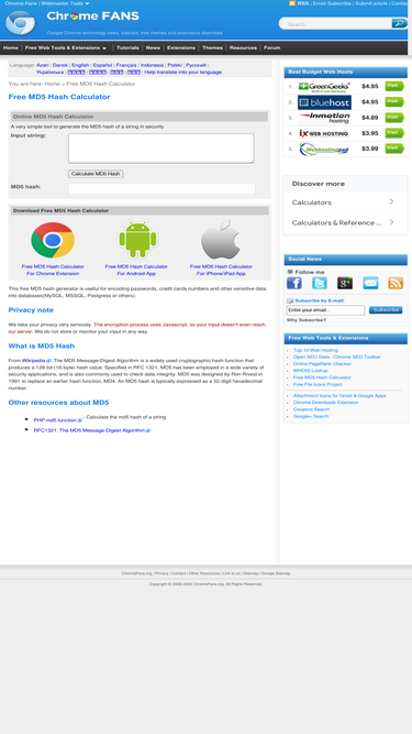 88%free md5 hash calculator: a very simple tool to generate the md5 hash of a string in security