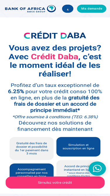 80%Simulez votre crédit conso en quelques clics à travers la toute nouvelle plateforme Crédit Daba, le simulateur crédit consommation de BANK OF AFRICA