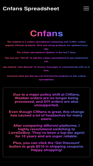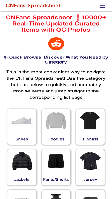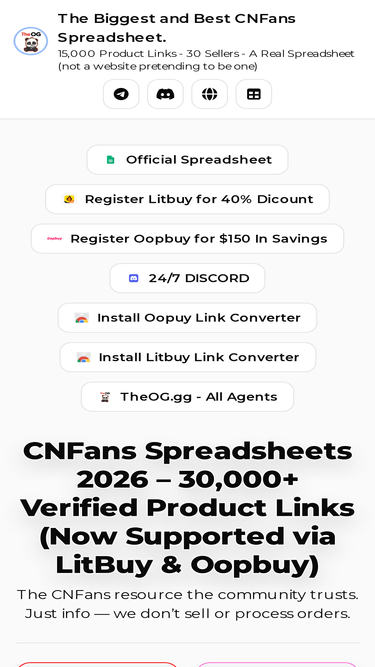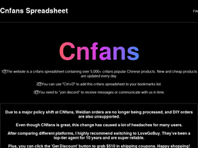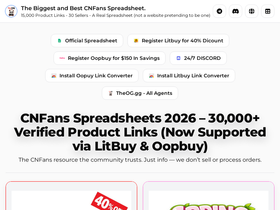 85%Find the latest CNFans spreadsheets 2026, verified Taobao and Weidian links, and the CNFans warning remover Chrome extension. CNFans.gg is the updated community hub for CNFans resources.