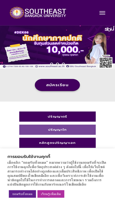 92%มหาวิทยาลัย เซาธ์อีสท์บางกอก มหาวิทยาลัย แห่งการสร้าง มืออาชีพ ด้านโลจิสติกส์ เทคโนโลยี และ บริหารธุรกิจ สนใจสมัครเรียนได้ตลอดเวลา ติดต่อเรา