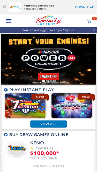 79%play the kentucky lottery online! purchase your favorite draw games and try our instant play games to win instantly. put a little play in your day.
