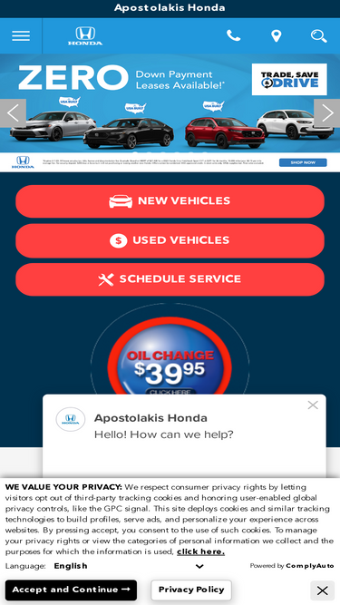 welcome to apostolakis honda, where we’re proud to serve trumbull, mahoning, columbiana, mercer, and lawrence counties since 1976.