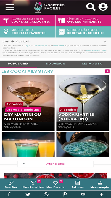 88%toutes les recettes de cocktails , avec fiches recettes claires et simples. des idées de cocktails par thématique, ambiance, fruits de saison. recherche par ingrédients de cocktails ou nom du cocktail...