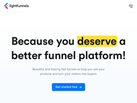 92%Lightfunnels makes it easy to create high-converting sales funnels with AI tools, seamless integrations, and drag-and-drop simplicity. Boost your online business today!