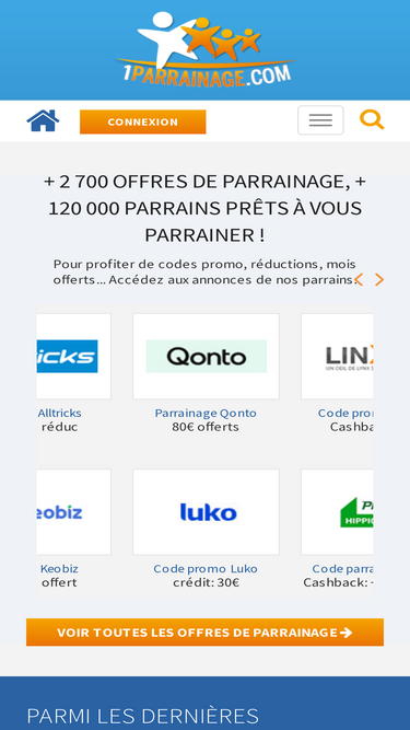 56%parrainage.co : site de partage de code parrainage. trouvez un parrain ou cherchez des filleuls pour obtenir des primes de parrainage ! site 100% gratuit