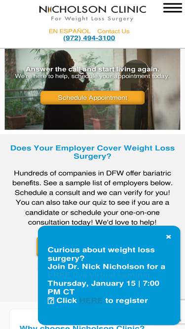 64%Gracias por visitar la Clínica Nicholson. ¡Estamos muy contentos de que esté aquí! Si usted está luchando con su peso, y la dieta y el ejercicio no están funcionando, no está solo. La obesidad ha alcanzado proporciones epidémicas en los Estados Unidos. Casi el 40% de los adultos y el 19% de los jóvenes son […]