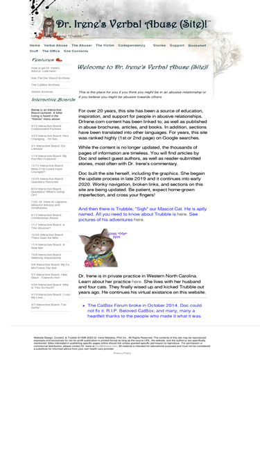 64%dr. irene's verbal abuse & codependency site for angry people and those who love them. gender-bias free site. boards, chats, lists ,email advice & more!