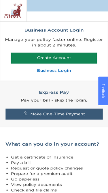 57%login or create a business account at the hartford to pay bills, view policy documents, request a certificate of insurance, go paperless or check your claim status.