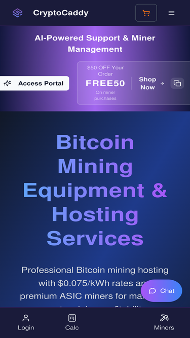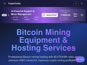 84%CryptoCaddy offers premium ASIC miners for Bitcoin, Dogecoin & cryptocurrencies. Professional hosting with $0.075/kWh rates, 99.3%+ uptime.
